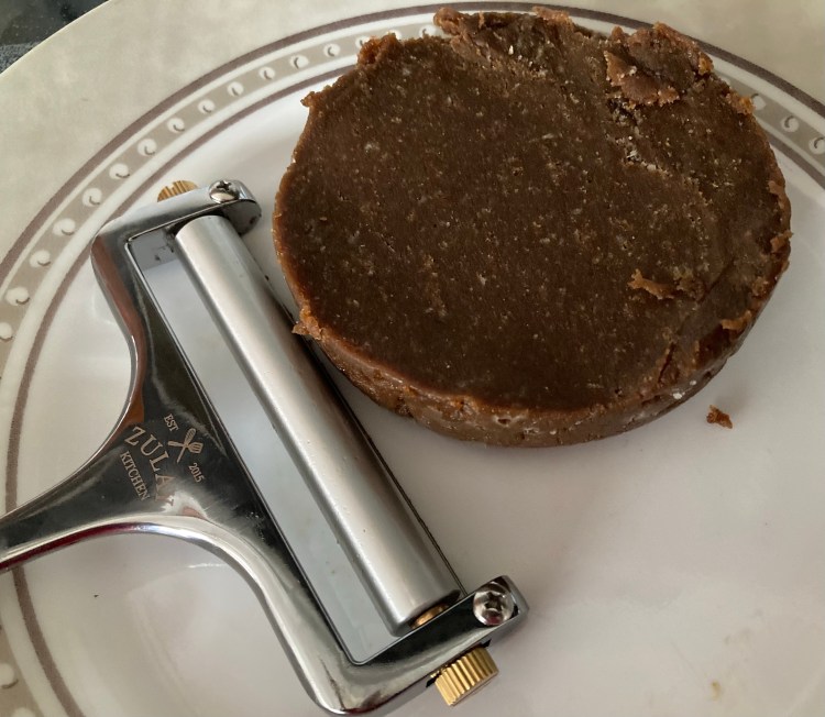 The recipe that I found for vegan Gjetost (goat cheese) called for quite a number of ingredients that are hard to find in my area (maca powder, smoked Cyprus sea salt, Queen vegetable gelatin sachets etc. I had to make my own vegan dulce de leche since I could not find this product, especially using a soy milk base. Not wanting to stand over the stove for 3+ hours just to make one ingredient, I opted to make dulce de leche with a coconut milk and cream base instead. This process only took 30 minutes. Some conversion was required to calculate how many Dr. Oetker plant-based gel packs are equivalent to the Queen packets (double the number of packets if using Dr. Oetker’s product of 6.5 grams per pack).