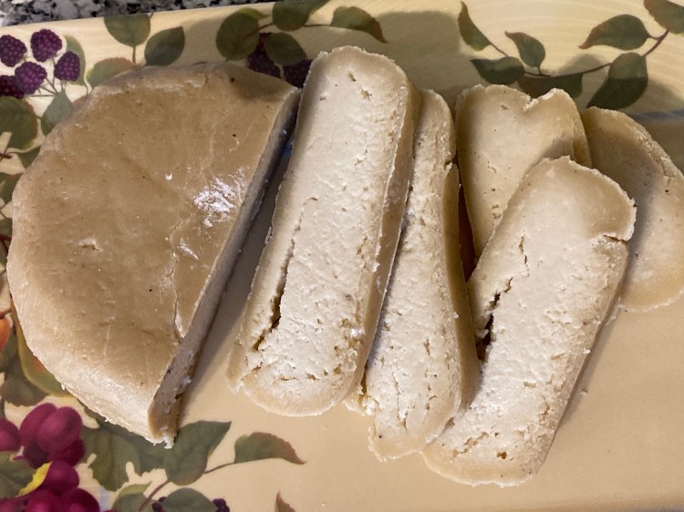To be perfect honest, I didn’t care for the vegan Gjetost. Not only did the salty flavor dominate, but the other ingredients didn’t compliment each other well. And instead of being a smooth, soft cheese, the controlling texture was gelatinous. But, I was happy that I tried it. I wonder how it could be altered to make it more palatable.