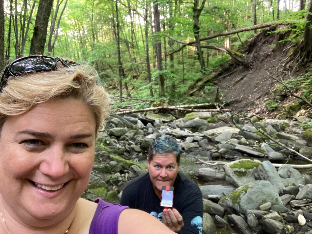 A year after Mindy left, Chrissy proposed to me beside a river in a very scenic setting in rural Vermont. I was taken completely by surprise! She was behind me on the river bank and after taking a selfie, I turned around to find her on one knee with a beautiful ring in hand. When scrolling through my pictures later, I discovered that my selfie had actually captured her on her knee waiting for me to turn around.