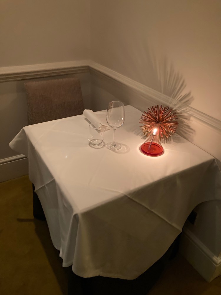 A friendly staff member answered the door quickly. I gave my name and was ushered to my table for one. The surroundings seemed understated and elegant. This upscale French restaurant, in the heart of London’s Soho district, was housed inside a townhouse. It is this familiarity perhaps, coupled with friendliness and attentiveness of the staff, that caused me to feel at home. The white walls and white tablecloths made me feel like I was part of a canvas that was about to experience art. The unassuming ambience gave me the impression of “let the food speak for itself”.