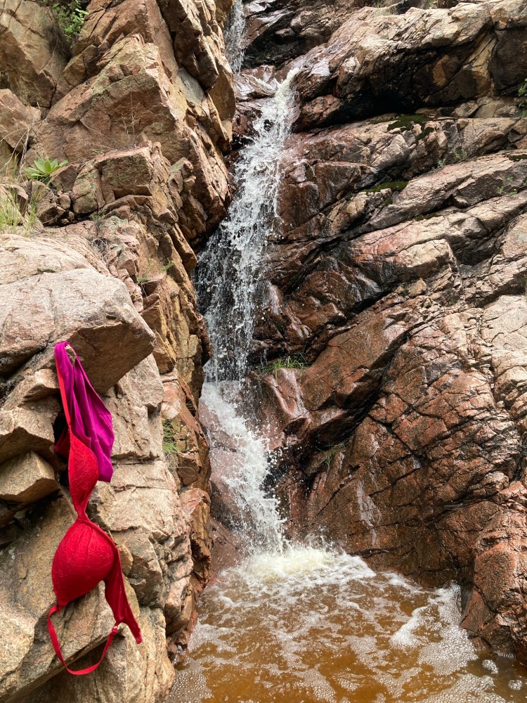 I felt quite a sense of accomplishment when I suddenly looked left and there was the cold mountain stream cascading down the rocks. It was beautiful. Perhaps being influenced by the alluring nature around me, I felt compelled to enjoy the waterfall au naturel. Hoping I was the only one hiking on the trail that day, I promptly walked over the falls removing clothes as I went. I held my breath and allowed the freezing cold water to wash over me, the power massaging my shoulders. What a fantastic way to end my week in Santa Fe!