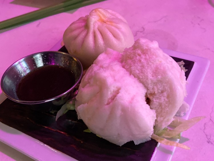 Spicy tofu bun (back), char sui shiitake bun from Spicy Moon