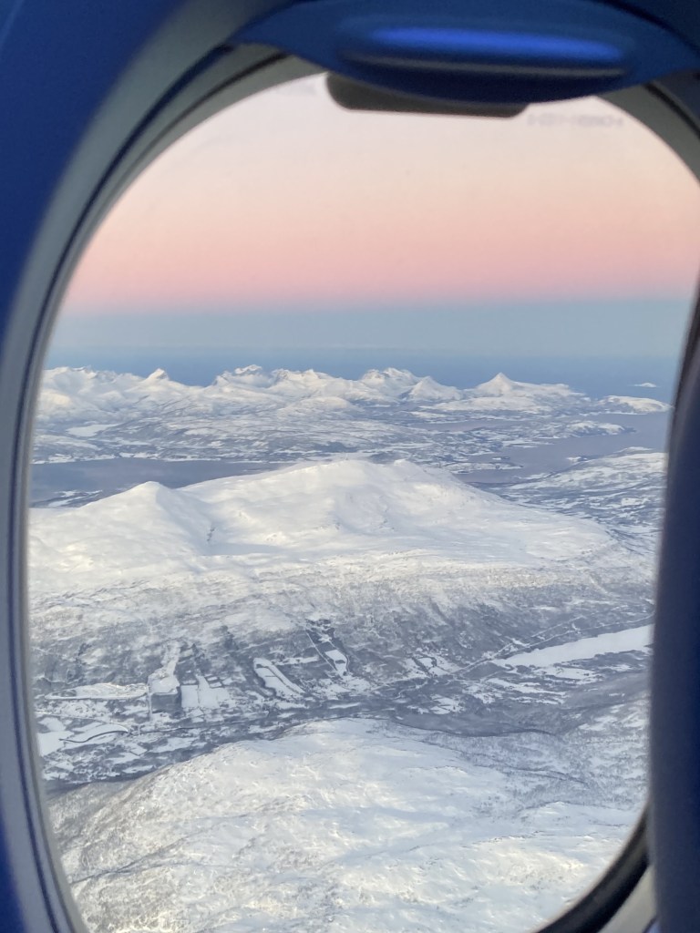 Checkout day happened to be my actual birthday. After a leisurely breakfast, we checked out of the hotel and caught the airport bus back to the airport. I proudly donned my tiara and “It’s my 50th birthday” T-shirt. With plenty of room on the plane, we spread out, each having a window seat. This was our last opportunity, after all, to try to see the northern lights. I was also looking forward to seeing the first glimpses of the sun again. Unfortunately, we weren’t able to enjoy any aurora borealis on this trip, but this only means that the search continues.