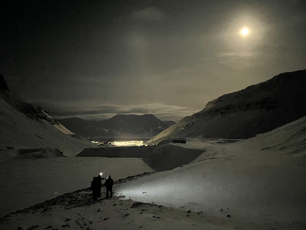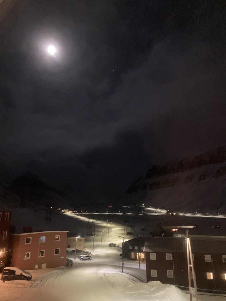 Once back on the plane, my excitement grew. I was about to travel the furthest north I had ever been – 78° North Longitude. As we traveled due north, my eyes stayed glued to the window taking it all in. I was fascinated at being able to see the line where the light ended and the perpetual darkness began. I mentally said goodbye to the sun and we landed in what felt like a different world.