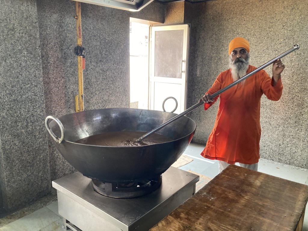 After showing us a very special room that houses the Sikh holy book (at 9:30pm every evening the book is ceremoniously taken to this room to spend the night), we walked to the community kitchen. Our guide introduced us to a man making a dish in the biggest pot I have ever seen. We politely declined their offer to try the food because it included ghee (clarified butter).