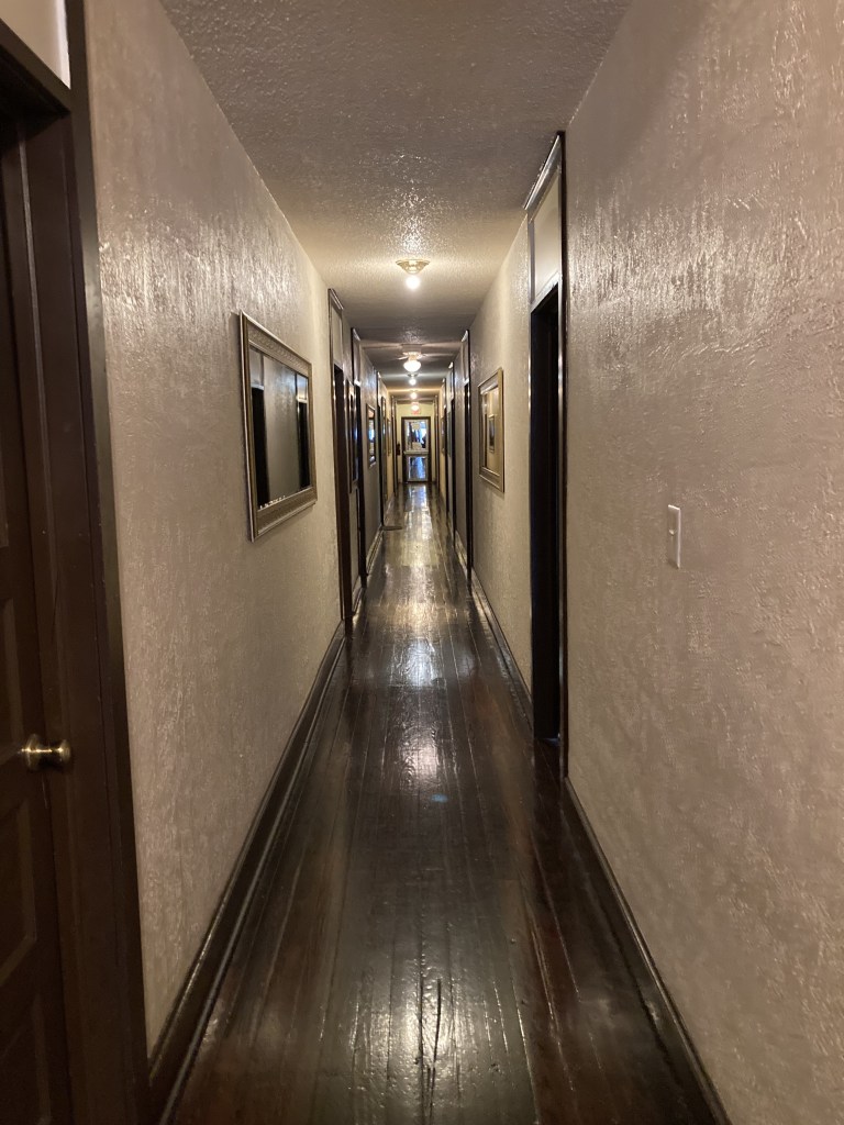 Knowing this, in the cover of darkness, I entered the hotel with my eyes wide open ready to notice anything unusual. I walked past the vintage furniture and under beautiful chandeliers in the lobby and up the wide staircase. A hallway lined with big mirrors led me to my room.