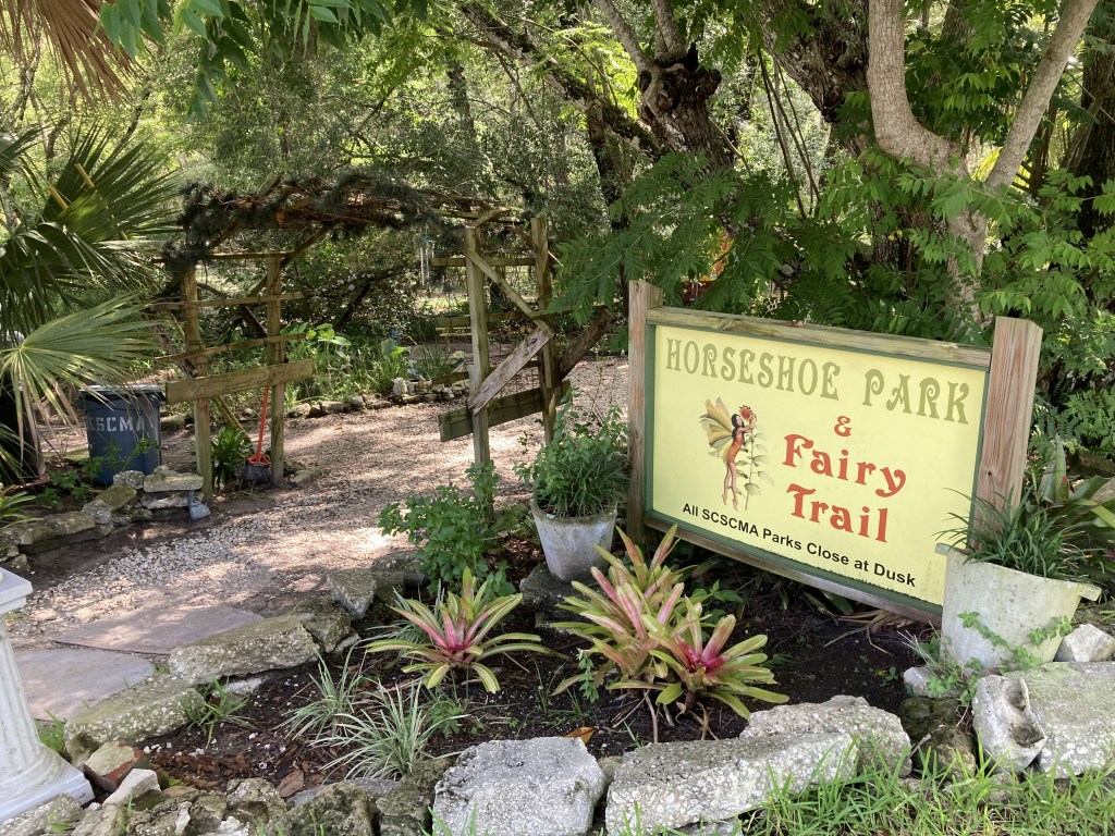 One of the draws to Cassadaga is the Fairy Trail and it is exactly as it sounds: a short trail through the trees with a fairy-like atmosphere. Trees were draped with colorful beads, little dolls and houses lined the ground and dream catchers and even a chandelier hung from above. This .2 mile loop looked like a fairy’s playground. I brought along colorful beads for us to add to the magical spot.