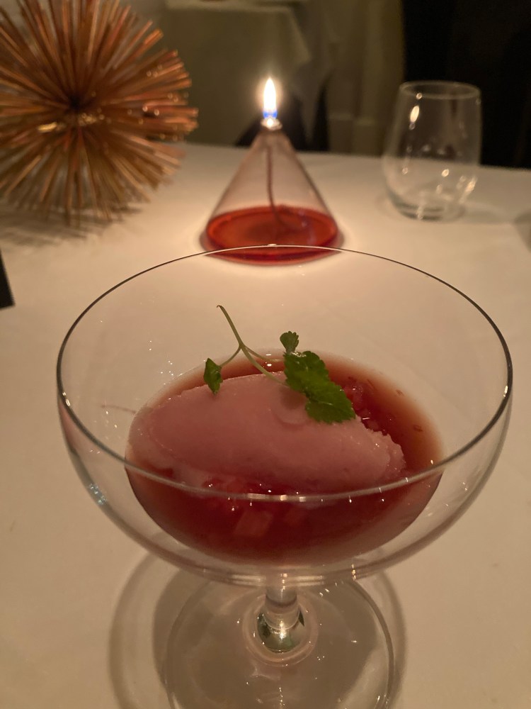 This course was followed by a raspberry sorbet, to cleanse our palates.