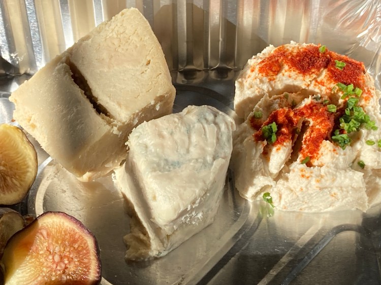 I ordered the cheese platter to go and happily enjoyed it with my friend Coopie the following day at lunch. The almond brie ages for 2-5 weeks, the macadamia ricotta, which is topped with paprika and chives, is made daily and the cashew brie ages for whopping 5 months. The blue color comes from spirulina, a blue-green algae that grows in both salt and freshwater.