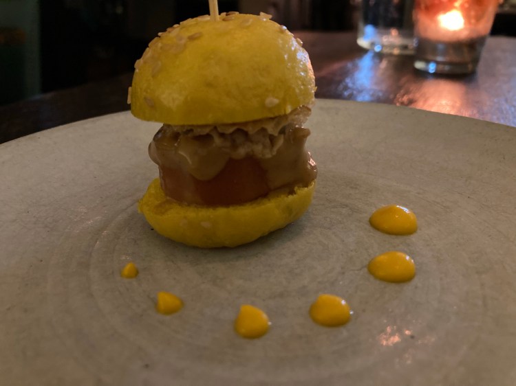I was struck by the creativity of the cocktail menu, from the leaf peeper (bourbon, beet, maple and orange) to the teeny tiny turniptini (gin or vodka, picked turnip brine, dry vermouth). I ordered a 14 carrot gold cocktail with tequila, carrot, turmeric, lemon and black pepper. I enjoyed every sip!