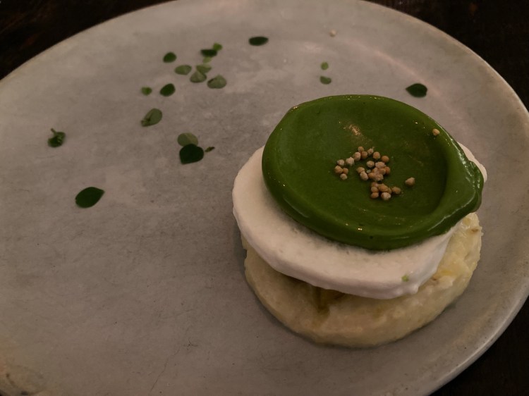 The first item to reach my table was a shot of chilled watercress broth designed to refresh the palette, no doubt preparing it for the array of dishes to come. The rich green liquid arrived in a cloud of dry ice. What a way to start the evening!