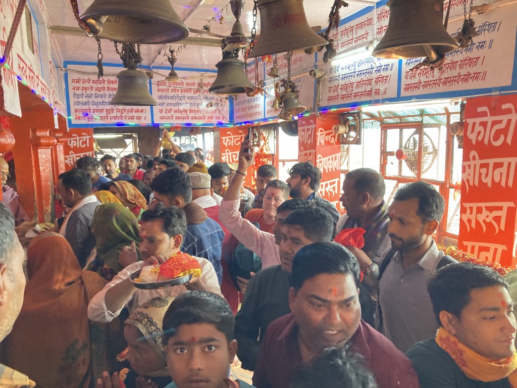 We were ushered out of our private gondola and very soon after men started yelling at us pointing at our feet. Clearly, wanting us to remove our shoes, we looked around and saw that others had not removed theirs so we kept ours on too, still moving towards the temple noticing people’s feet as we stepped closer. Vendors were selling all kinds of offerings in the form of flowers and gold, in addition to offering to store our shoes for us. When we got to the point where we saw Indians remove their shoes, we did the same, placing them in our bag that we had brought specifically for this purpose.