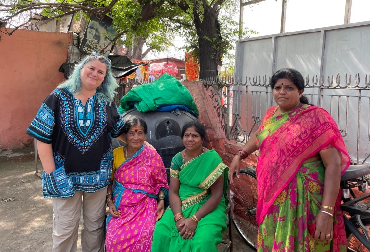 One day Chrissy and I came across a Hindu temple of Makara, the vahana (vehicle) of the river goddess Ganga. We curiously stepped inside the small temple grounds where we met three older ladies, the oldest of whom was quite intrigued by us. She came over to me and smiled with her entire face and began softly talking to me in Hindi. She motioned for Chrissy to take our picture making sure I was next to her. After, she wanted to see the picture so Chrissy handed her the phone and she studied the image closely, smiling and speaking in Hindi in soft tones. When she was satisfied, she returned the phone to Chrissy and took my hand and began talking to me again. I don’t know what she was saying, but I saw kindness and love behind her brown eyes with blue around the outside. I wanted her to keep talking.