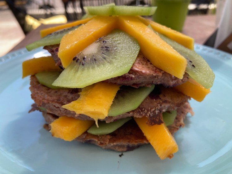 We were SO happy that MAWE was open again! I ordered the enchiladas with green sauce and Chrissy enjoyed the blueberry oatmeal pancakes with fresh mango and kiwi. After the void of delicious vegan food the day before, we felt like all was right with the world again after a delicious MAWE breakfast.