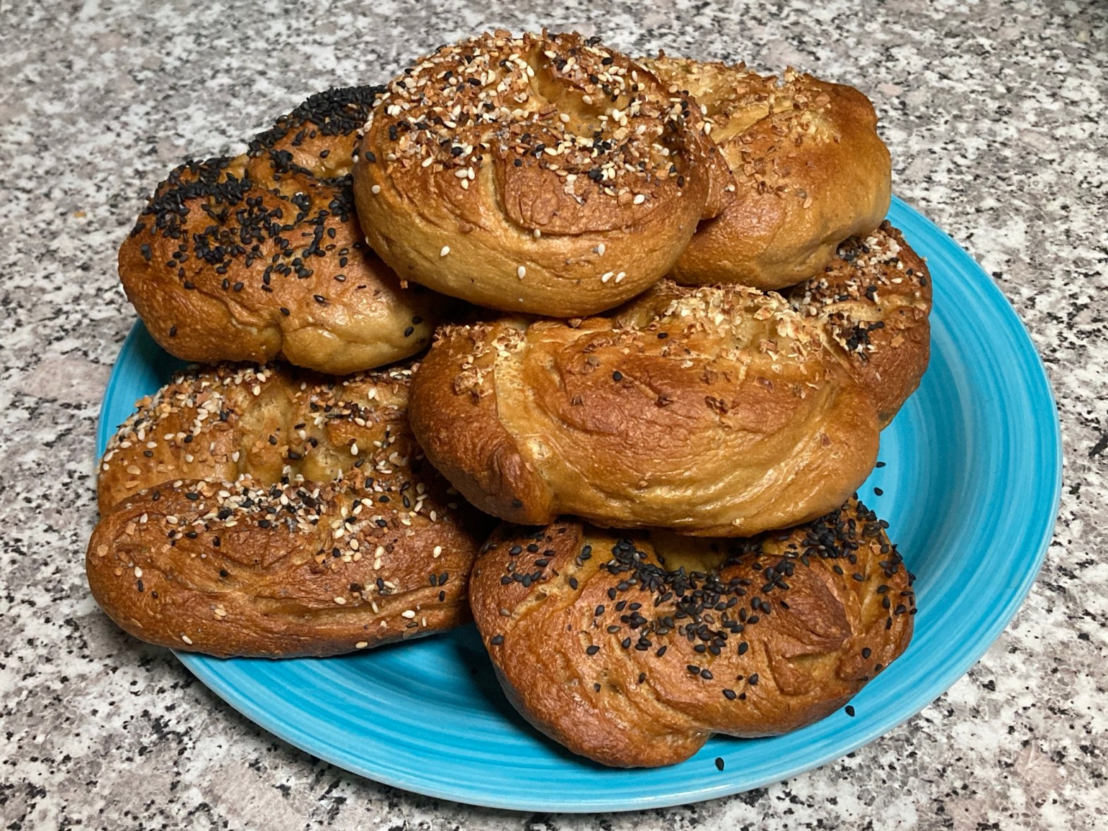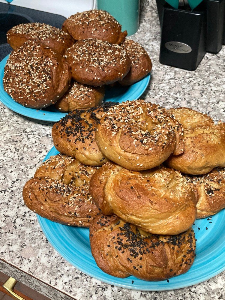 Twelve years ago, I made the decision to go from vegetarian to vegan and I’m so glad I did. And what better way to celebrate a dozen years than to make a dozen bagels! I first tried a bagel shortly after my 13th birthday in Miami, Florida on my way to Costa Rica, my very first journey outside the United States. I had to stay overnight in a hotel (it was coincidently also the day of the Challenger explosion and I was trying to make sense of it all when I saw what had happened on the television in my hotel). I don’t remember who picked me up and took care of me overnight, but I would imagine it was someone on the Quaker trip that would take me to Costa Rica. My grandmother had invited me and I must say that that trip changed my life forever, arming me with the desire to see as much of the world as I could. The woman who stayed with me at the hotel had purchased onion bagels and I loved them! I’ve been enjoying bagels around the world ever since. I was excited to make them from scratch in my kitchen with my fiancee.